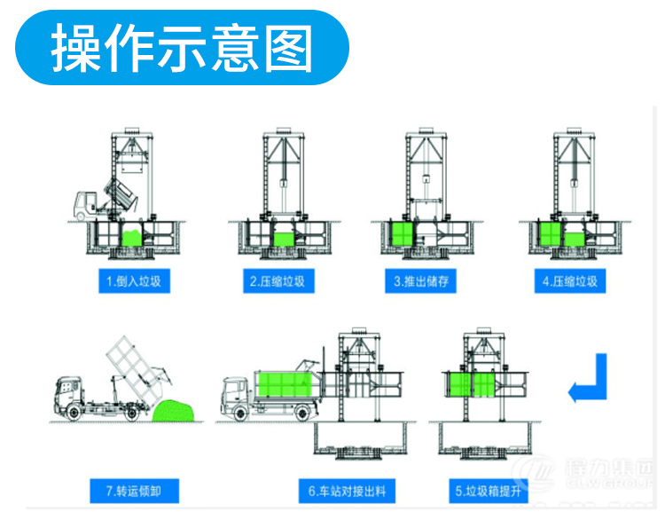 ◇設(shè)有垃圾儲存箱,適合集裝箱式散裝垃圾運輸車卸料,減少運輸費用。