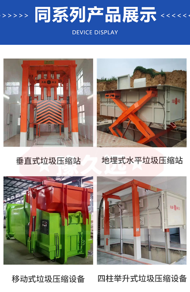 ◇采用垂直壓縮方式,壓縮力大,垃圾塊壓實密度大。